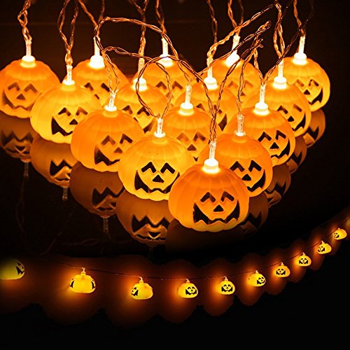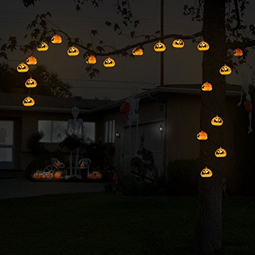-. Feature : DIMENSION: A total length of 5.5 feet and a weight of 200 grams, a total of 10 63mm(L) * 49mm(H) mini-lantern pumpkins. / BATTERY OPERATED: Powered by 2 * AA battery (Not provided). No worries about extension cord and plug will limit you. / SAFE TO USE: For indoor and covered outdoor use, easy to set or wrap. Good heat radiation and never go hot. / SOFT WARM LIGHT: 3D Jack-O-Lantern Pumpkin designed LEDs string light create "Halloween festival atmosphere" anywhere. / DECOR ANYWHERE: Great Halloween prop to decorate your Halloween Party, and other festival parties, shows, cosplay parties, Masquerades, school, home, club light decorations.