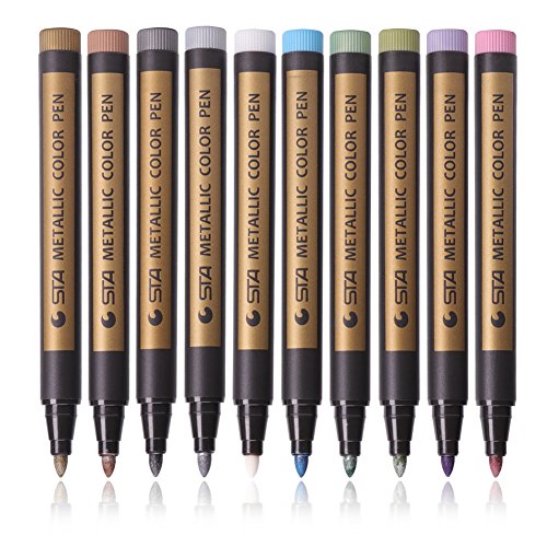 Metallic Markers Paints Pens - Medium Fine Point Metal Art Painting Markers For Gift Card Making, DIY Photo Album, Scrapbooking, Christmas Craft Kids - Works on Most Surfaces - Pack of 10