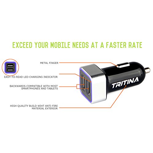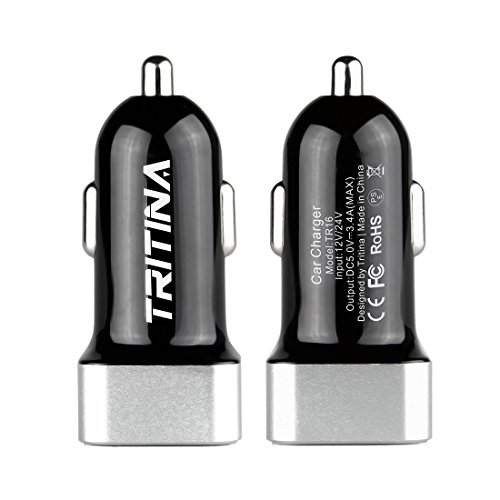 Tritina Car Charger 17W 3.4A Dual USB Port with Charge Sync Cable for iPhone, Samsung and Other Mobile Phone Tablet PC(Black)