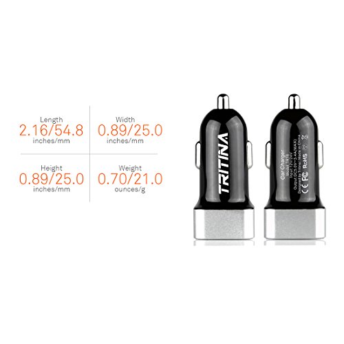 COMPACT DESIGN & EASY TO USE - The Tritina Universal Car Charger is extremely fast,Square Header allow you to plug and unplug the car charger with ease. The blue light lets you know that the power is on and ready to charge.vibrant blue LED indicators show charging status at a glance.