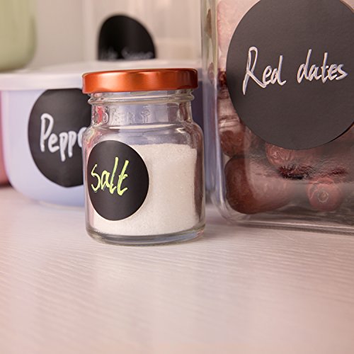 - WIDE USE: 162 PACK Chalkboard Labels can use for jars, organizing, labeling, and weddings, wine glasses, coffee or tea tin boxes, canisters, baskets, folders, office supplies, organize your home, kitchen, decorate your pantry storage & office, parties, coffee shop, craft projects, bakeries, walls and kids bedrooms.