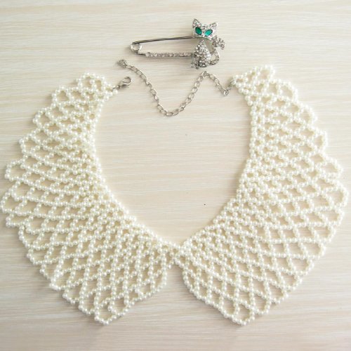 -. Binding : Misc. -. Brand : kilofly -. Feature : Materials - White faux pearls in strands connected by a silver-colored alloy clasp / Vintage and elegant design - Stand collar style / A perfect match with dresses, T-shirts and sweaters in all occasions or as gift to friends / Comes with a lovely rhinestones mounted safety brooch pin adorned with a cute green eye cat -. Label : kilofly -. Manufacturer : kilofly -. MPN : AWA305V -. PartNumber : AWA305V -. ProductGroup : Beauty -. ProductTypeName : BEAUTY -. Publisher : kilofly -. Studio : kilofly -. Title : kilofly White Faux Pearl False Collar Necklace, with Rhinestone Cat Pin