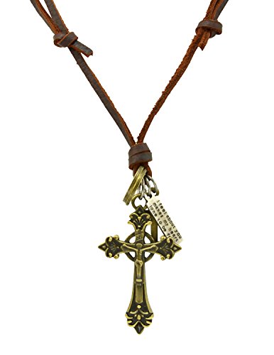 -. Binding : Jewelry -. Brand : Paialco -. Department : womens -. Feature : The necklace is 100% handmade with genunie cowhide leather cord. / Adjustable necklace size 18 - 36 inches. / Ancient cross charm pendant tied on, well crafted. / Be a little debris to fall from the leather cord when the first use. / Packed in elegant gift box. -. Label : JAYP -. Manufacturer : JAYP -. Model : JN10257BR00 -. MPN : JN10257BR00 -. PartNumber : JN10257BR00 -. ProductGroup : Jewelry -. ProductTypeName : FASHIONNECKLACEBRACELETANKLET -. Publisher : JAYP -. Studio : JAYP -. Title : Handmade Genuine Cowhide Leather Cross Pendant Necklace Adjustable Size