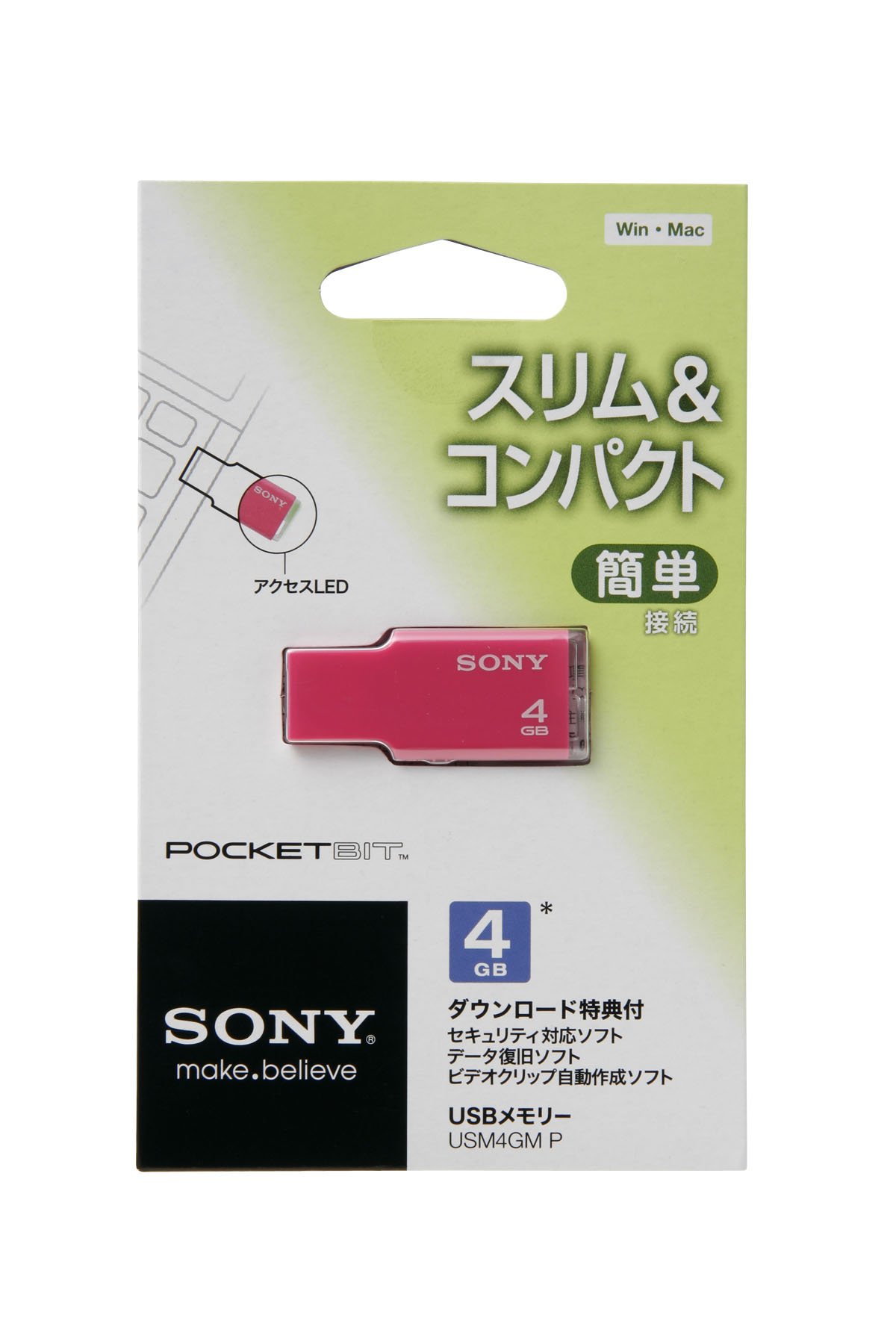 SONY Slim & compact USB memory pocket bit 4GB pink cap-less USM4GM P