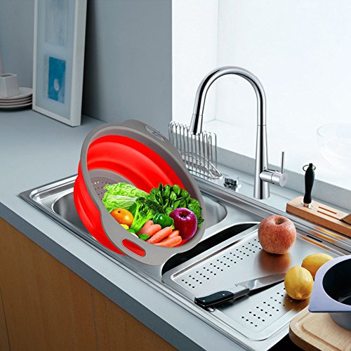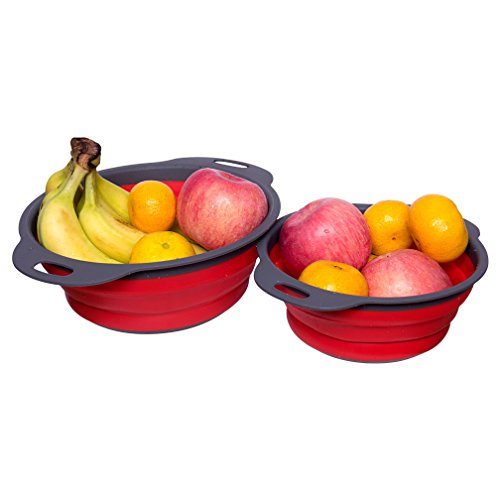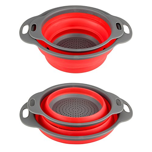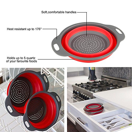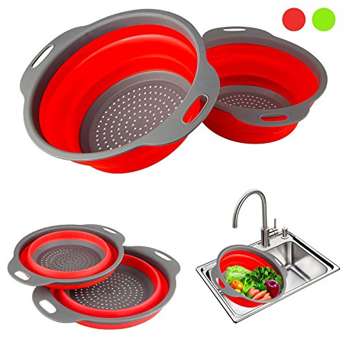 Studio : DGEMOC Publisher : DGEMOC Product Description SAVE SPACE 2-Piece Strainer Set,Collapses to only 2 inches in height, Whether your kitchen is big or small, this colander set will save you some much needed space, while performing the tasks you need in amazing colors. EASY TO USE Its integrated colander means you can rinse food in the main bowl and then drain off the excess water, without having to tip the contents into a separate colander or sieve. Once drained, the contents can either be tipped into a pan for cooking, combined with other ingredients such as sauces and dressings, or served straight to the table all using the same bowl. It's ideal for preparing and serving salads and soft fruits or for rinsing rice and lentils prior to cooking. Not suitable for microwave cooking or storing liquids.