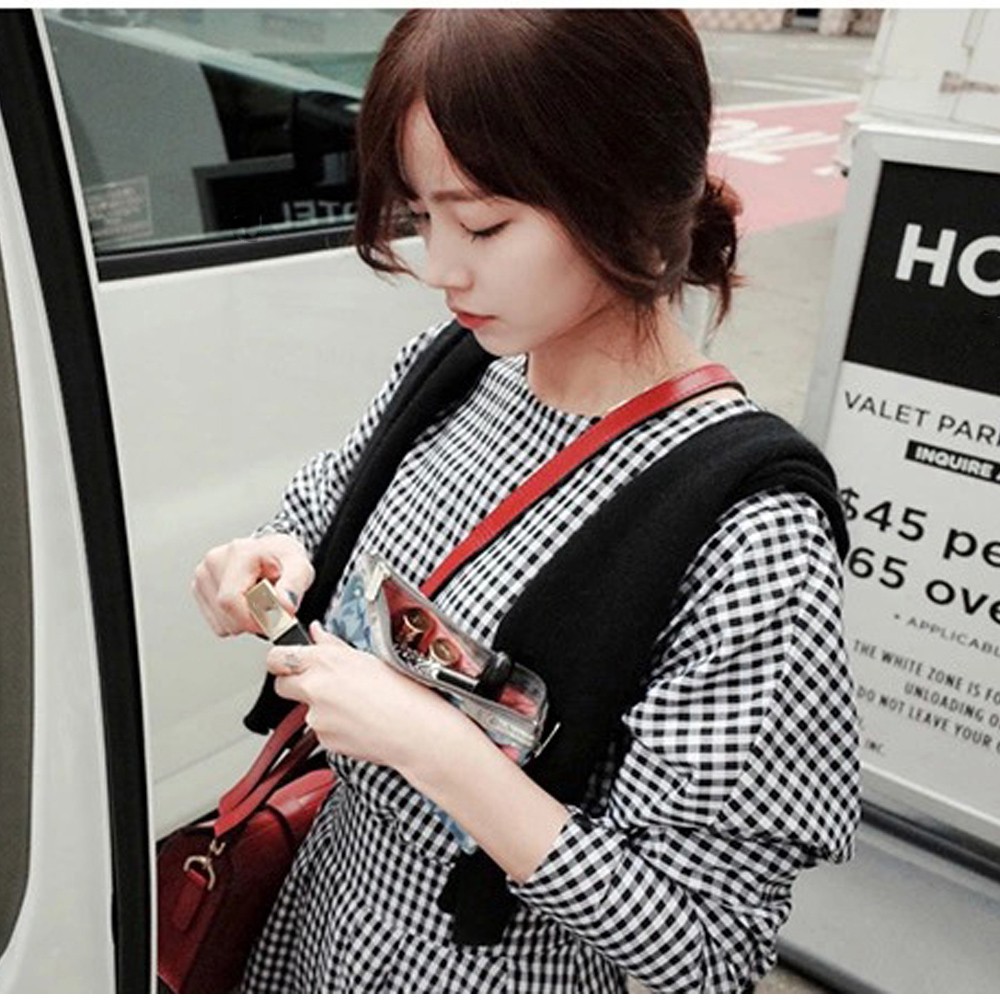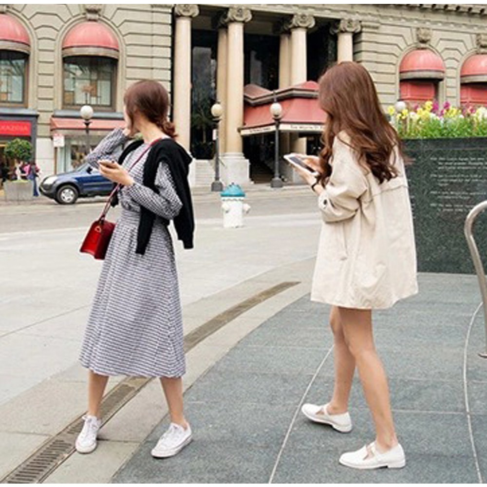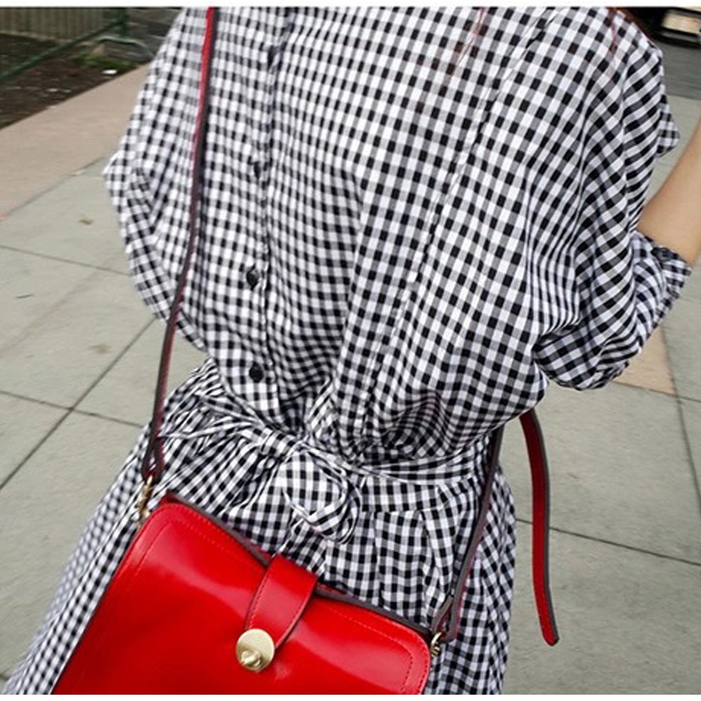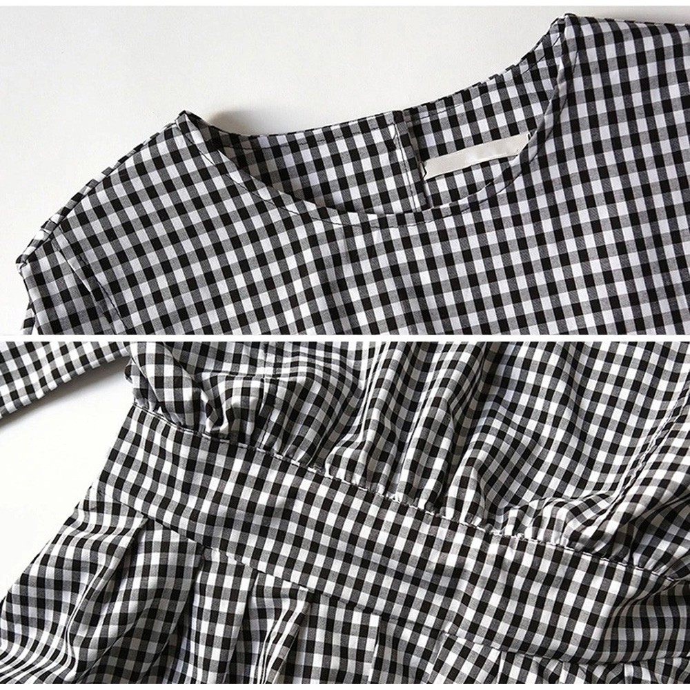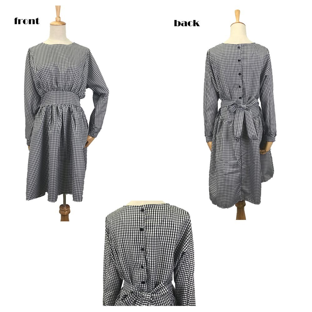 モノトーンのギンガムチェック柄の綿混生地で仕上げたミモレ丈ワンピース
