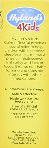 -. Binding : Baby Product -. Brand : Hyland's Homeopathic -. Feature : Avocado oil is pressed from the fleshy pulp at the fruit's center and contains naturally occurring fatty acids and plant sterols / These sleepless nights are heartbreaking as much as they are exhausting for both of you / But even the youngest human body has the ability to re-establish balance and health including rejuvenating sleep patterns -. Label : Hyland's Homeopathic -. Manufacturer : Hyland's Homeopathic -. ProductGroup : Baby Product -. ProductTypeName : BABY_PRODUCT -. Publisher : Hyland's Homeopathic -. Studio : Hyland's Homeopathic -. Title : Hyland's 4 Kids Natural Calm'n Restful Tablets, Natural Symptomatic Relief of Sleeplessness and Restlessness in Kids
