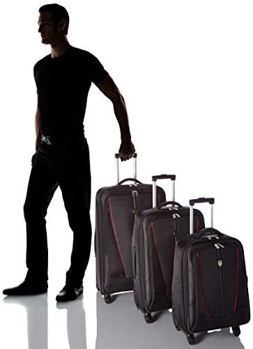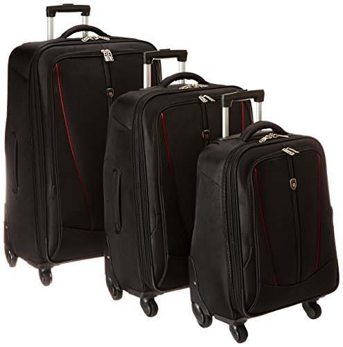 Silhouette Collection- 3 Piece "Heavy-Duty" Luggage Set with 360? 4-Wheel System in Black with Red Trim