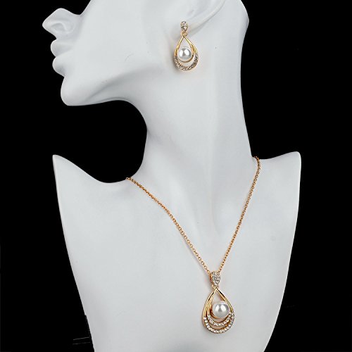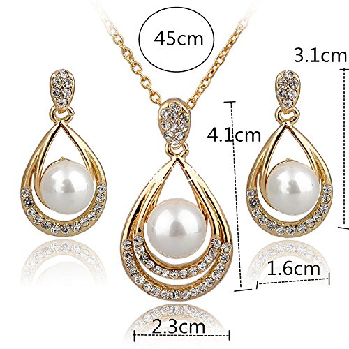 - Title : Long Way Gold/Silver Plated Water-drop Pendant Necklace Dangle Earrings Set Austrian Crystal Rhinestone Imitated Pearl Wedding Jewelry Sets For Women