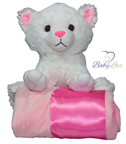 KITTY PLUSHIE AND BABY BLANKET: A sweet, kitty stuffed animal with a super soft pink receiving blanket to comfort a baby girl for years to come as those first blankets and animals often do