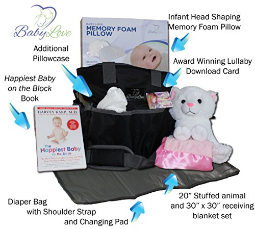 Baby Diaper Bag Gift Basket: New Mom Shower Gifts Set with Travel Changing Pad, Lullabies, Stuffed Animal, Receiving Blanket, Baby Pillow, and Harvey...