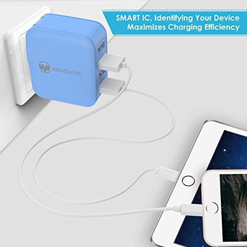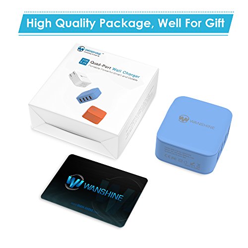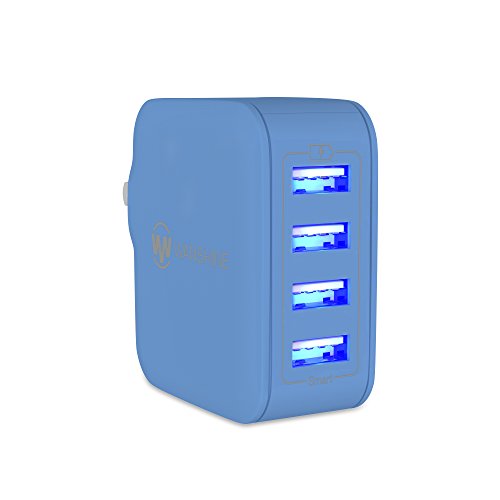 Wanshine 31W 6.2A Universal 4-Port USB Travel Wall Charger with Hidden LED Indicator Light - Blue