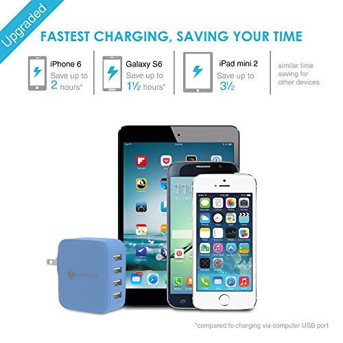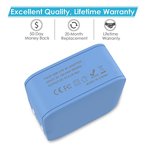 Ultra-Fast: 31W/6.2A 4-USB output lets you charge any four smartphones or tablet devices simultaneously at the fastest speed.