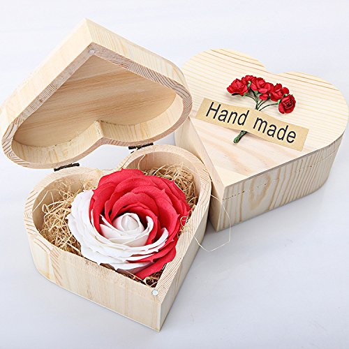 -. Feature : 100% brand new made with nice wood heart shape box / Fragrance scents of essential oil to relax your body during the bath / Perfect gift for Valentines day gift, birthday, wedding gift, Christmas gift or any occasion / Included: wood made heart shape box and 1 big rose soap flower / Size: 13 cm x 13 cm x 7 cm