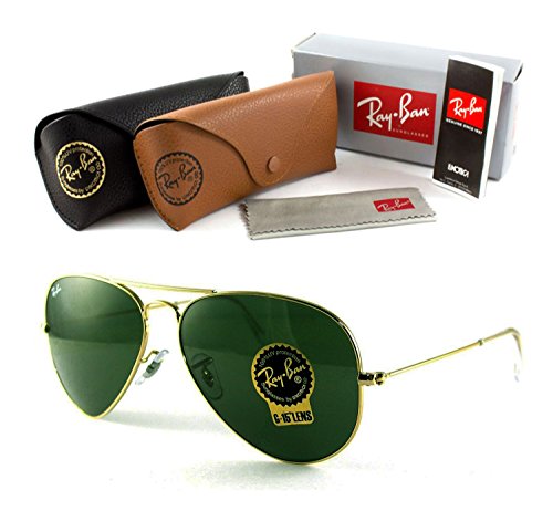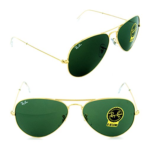 Ray-Ban RB3025 Classic Aviator Sunglasses Gold/Crystal Green (L0205) RB 3025 58mm