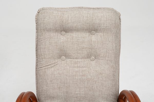 ●背部は3段階リクライニング。座面は360度回転式の籐座椅子