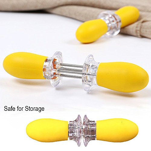 * Keeps fingers away from hot corn with soft grip ergonomic handles and stainless steel pins, also large enough to have a larger guy's hands not feel like he is holding onto a toy while trying to eat a big ol' ear of corn.