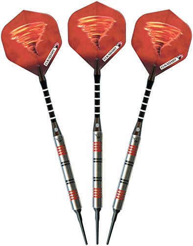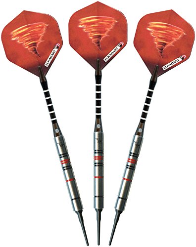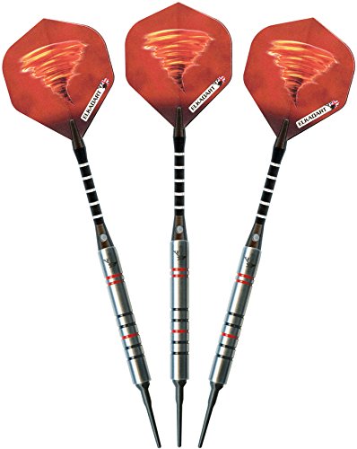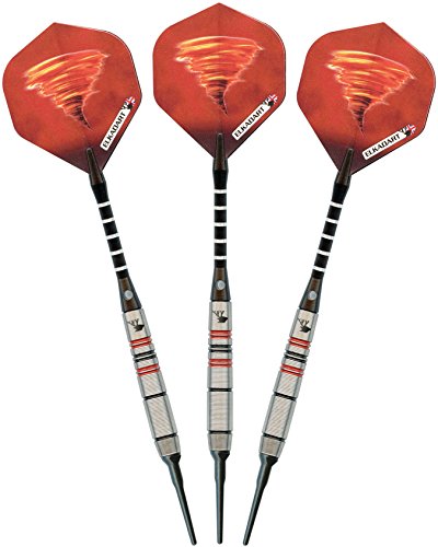 -. Feature : Designed with high quality, 90% tungsten and 10% nickel barrels which offer exceptional balance and styling in a slim profile / Each barrel has strategically placed knurled bands, deep grooves and rings that make excellent gripping points and encourages consistent hand placement / Lightweight, aluminum shafts feature locking holes which allow for a tighter fitting that improves stability and greatly reduces the need to retighten during play / Features 2BA Tufflex Tips II soft tip dart points that have a reinforced cone, making them extremely strong and durable; Intended for use with electronic dartboards / Darts are fashionably stored and protected in the slim-profile, hard-shell case; Proudly designed, manufactured, assembled and packaged in England