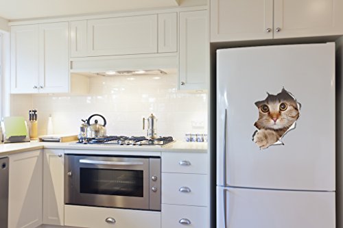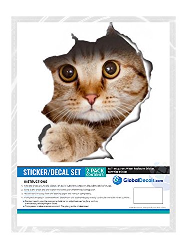 2 Pack - Global Decals 3D Cat Stickers - Peeking Cat Sticker for Wall, Fridge, Toilet and More - Retail Packaged