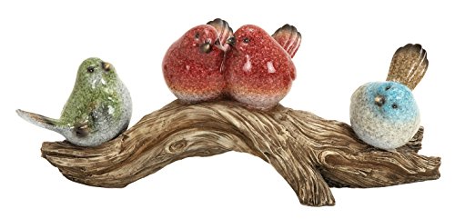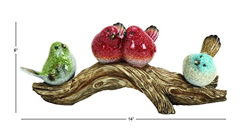 Deco 79 69306 Polystone Birds On Stump, 14"W/6"H