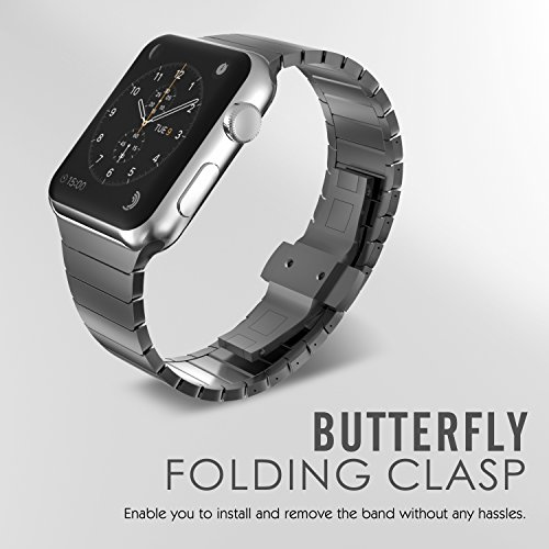 MoKo Band for Apple Watch Series 1 Series 2, Stainless Steel Replacement Smart Watch Band Wrist Strap with Butterfly Buckle Clasp for 38mm Apple Watch All Models - Space GRAY(Not Fit iWatch 42mm)