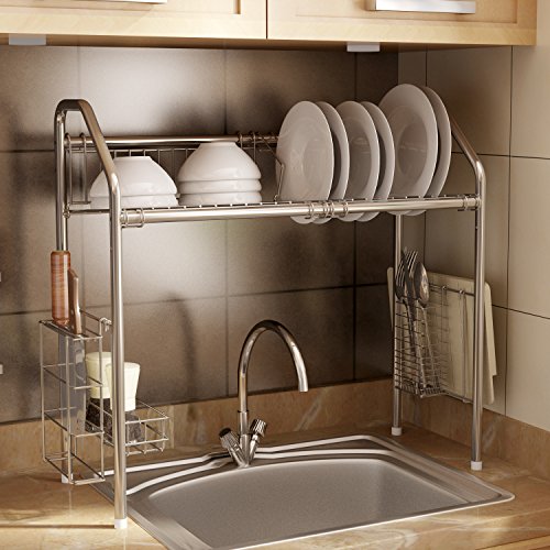 - Stainless steel material, polishing and welding process, prevent from rusting.The dish rack with height adjustment, sturdy, durable and more effective to storage.