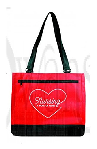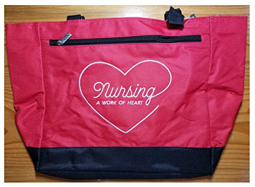 Nursing A Work of Heart Red Canvas Tote With Black Shoulder Handle
