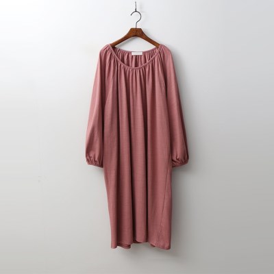 셔링디테일의 넥과 여유로운 실루엣의 원피스.