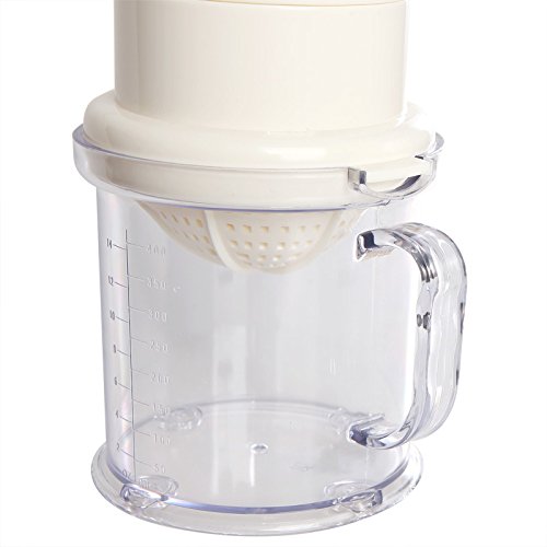 - Feature : 3-Piece Design Offers 2 Juicing Modes: Hand-Press Mode & Inverted-Press Mode / Base is Measuring Cup That Doubles as Serving Cup Once Juice is Accumulated / Juicer, Press & Measuring Cup Are Made 100% Food- & Dishwasher-Safe Plastics / Lightweight, Durable Hand Juicer Easily Turns Fruits & Vegetables into Fresh Juice / Pieces Stack Neatly to Save Space When Storing