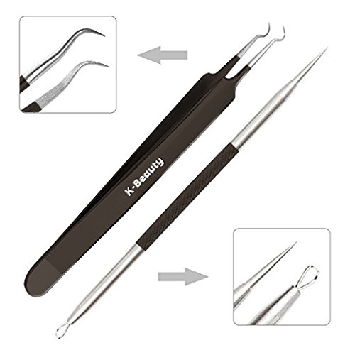 -. Feature : PREMIUM QUALITY: We put a lot of effort into manufacturing quality products that will meet our customers' expectations. We use the highest quality surgical grade stainless steel that is durable and easy to clean. K-Beauty Acne Removal Tool Set are coated in a tarnish-resistant matte black paint. / EASY AND COMFORTABLE: Applying minimal pressure, your tweezers will perform as needed without cutting or damaging hairs. This tool helps you get to hard to reach places and remove nose blackheads, outer ear whiteheads and more, leaving your skin silky smooth and hairs accurately removed. / PERFECT: This professional curved blackhead tweezers are perfectly aligned, ensuring its efficiency in removing a blackhead or whitehead, acne, comedone, every time you try. / SAFE AND GENTLE: These beauty tools are made of surgical grade ANTI-MICROBIAL stainless steel materials. They are safe to use for all skin type and won't cause any sensitivity issues. / PERFECT GIFT FOR HER OR HIM: Give your loved ones the gift of a beauty. Order now and let him/her feel the ideal comfort and satisfaction, that will make them throw their old ones out!