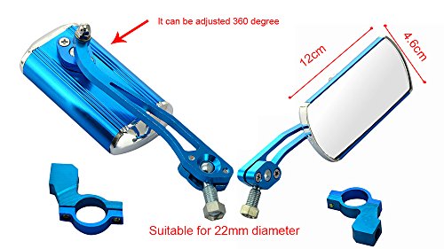 BicycleStore@ 1 Pcs Adjustable Rotating Flexibility Bicycle Handlebar Rear View Mirror Cycling MTB Electric Cars Rectangle Reflector Mirror Rearview Wide Angle Horizon Aluminium Alloy For 22mm Blue