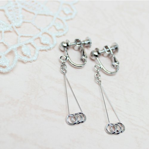 원본상품명: 細線トライアングル&3連リングイヤリング カラ?:シルバ? (e0108-R)