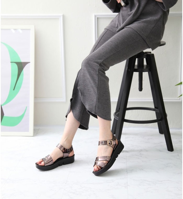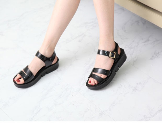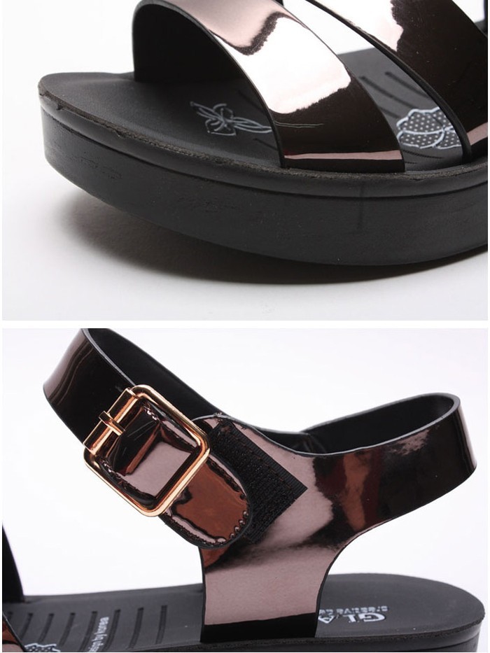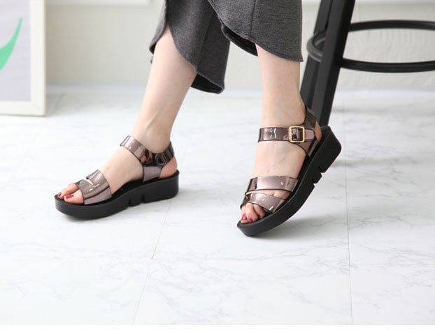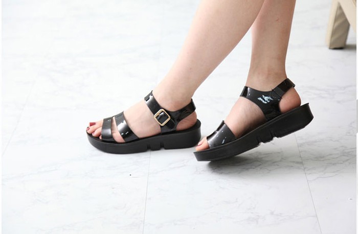 商品名:サンダル レディース エナメル調 ペタンコ フラットヒール 2018 春 ファッション 靴 婦人靴
