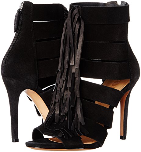 Product DescriptionOpen toe heeled sandal with fringe on upper0