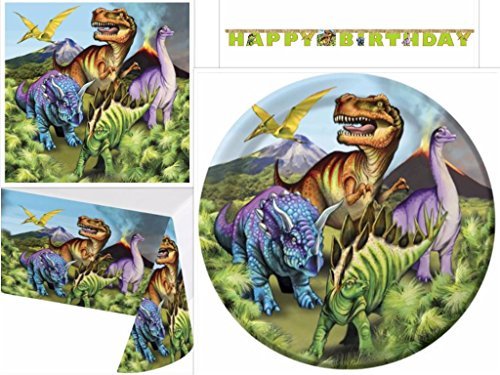 -. Title : Dino Dinosaur Birthday Party Supplies Set Kit Plates, Napkins, Table Cover Tableware Kit for 20 and Happy Birthday Jointed Banner