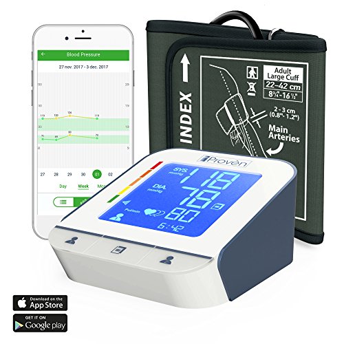 -. Binding : Health and Beauty -. Brand : iProvèn -. Feature : Lightning fast - The measuring during inflation method (MDI) and the DPDA technology make this blood pressure monitor lightning fast, pain-free and highly accurate. / Accurate - This blood pressure machine is equipped with both Irregular Heartbeat Detection (IHB) and shock detection to make sure all the right conditions are met during measurement. / Free app: iProvèn Health - Create your own blood pressure kit by connecting your BPM-2244BT via Bluetooth with your iPhone or Android Phone (Check for compatibility). / Extra Large cuff included - Easy fit upper arm cuff included in the kit - Size 9" - 17" - An upper arm cuff leads to more accuracy compared to a wrist cuff. / Everything you need for convenient blood pressure measurement: memory 60 + 60 measurements for each of the 2 users - AHA indicator helping you interpret the measurement - Easy to understand instructions that prove the ease of use of the iProven BPM series. -. IsAdultProduct : 0 -. Label : iProvèn -. Manufacturer : iProvèn -. MPN : BPM-2244BTn -. PartNumber : BPM-2244BTn -. ProductGroup : Health and Beauty -. ProductTypeName : HEALTH_PERSONAL_CARE -. Publisher : iProvèn -. Studio : iProvèn -. Title : Blood Pressure Monitor with Extra Large Cuff - Premium Technology: Double Pulse Detection - Lightning fast (30-40 sec) and Highly Accurate - iProvèn BPM-2244BT - Free Mobile App