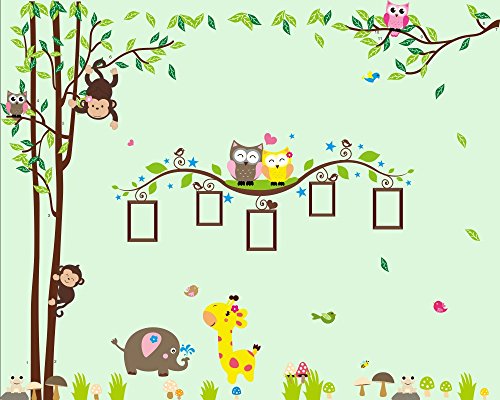 -. Title : Nursery Wall Decals XL, Nursery Tree, Owl, Monkey, Elephant,Giraffe Wall Decal, Picture Frame Wall Decals XL, Nursery Owls Wall Decor, Kids Room Wall Decals