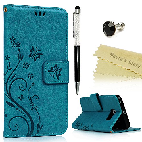 Galaxy S6 Edge Case - Mavis's Diary Premium Wallet PU Leather Fashion Embossed Floral Magnetic Clip Card Holders Folio Cover for Samsung Galaxy S6 Edge with Hand Strap & Crystal Pen & Dust Plug (Blue)