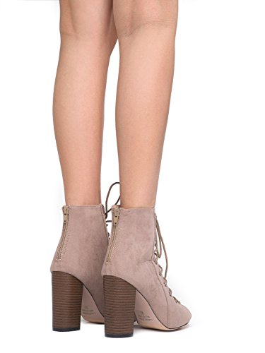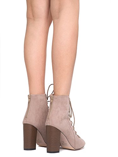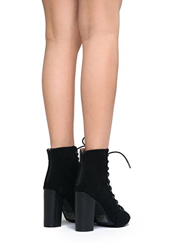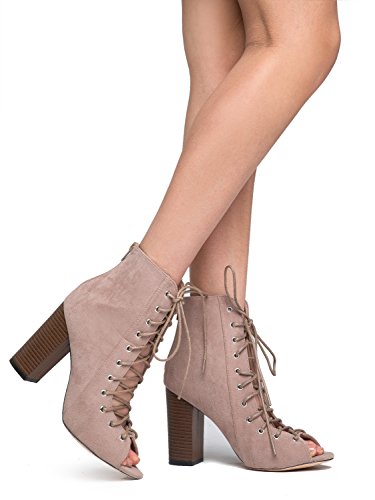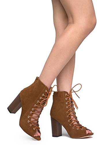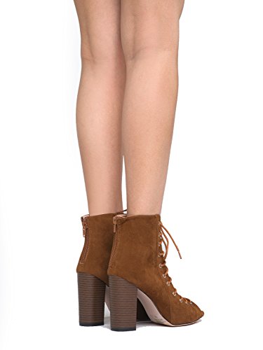 Lace Up Peep Toe Chunky Heel - Trendy Wood Block Heel Bootie - Open Toe Boot - Corrine by J Adams