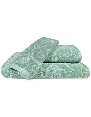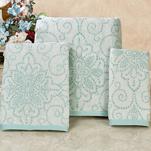Studio : Lenox Publisher : Lenox Product Description The French Perle Groove Bath Towel from Lenox is the perfect addition to a bathroom with a shabby chic ambiance. A dotted medallion motif set against an ice blue background on the towel makes for a vibrant and whimsical addition to a bathroom. Soft and plush, the 100% cotton towel caresses your skin in softness. 0