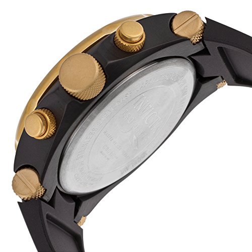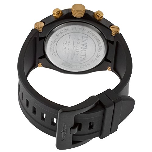 The Pro Diver collection from Invicta comes in a variety of styles and colors, ensuring there is something for everyone. This timepiece features a black and gold-tone style combination with luminous markers and hands and a chronograph feature, all held together by a polyurethane strap, making for a sporty and fashionable fit for any man.Feature