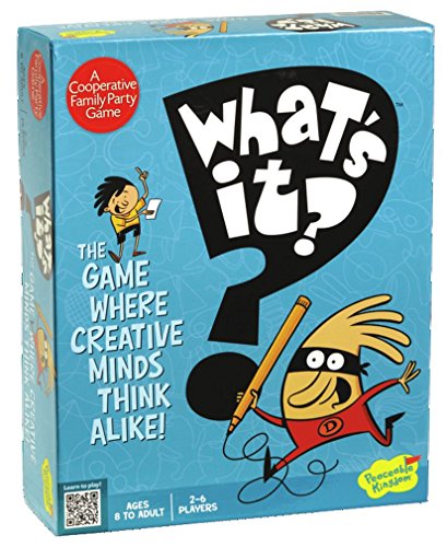 [Description] What``s It is the award winning game for family game night where creative minds think alike! Flip a doodle card_ flip the timer_ and write down your guesses of what the doodle looks like If you and another player guess alike_ everyone wins! Winner of five awards including Dr. Toy``s 10 Best Games Award and Parents`` Choice Award For 2 to 6 players ages 8 years through adult; Peaceable Kingdom packaging is all designed to be frustration free - naturally!
