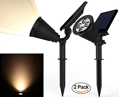 Solar Spotlights, Magictec Warm Light 2-in-1 Adjustable 4 LED Wall / Landscape Solar Lights with Automatic On/Off Sensor, 2 Pack