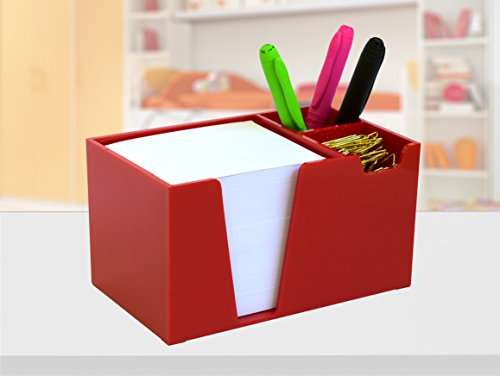 Acrimet Desk Organizer Pencil Paper Clip Holder (Solid Red Color) (With Paper)