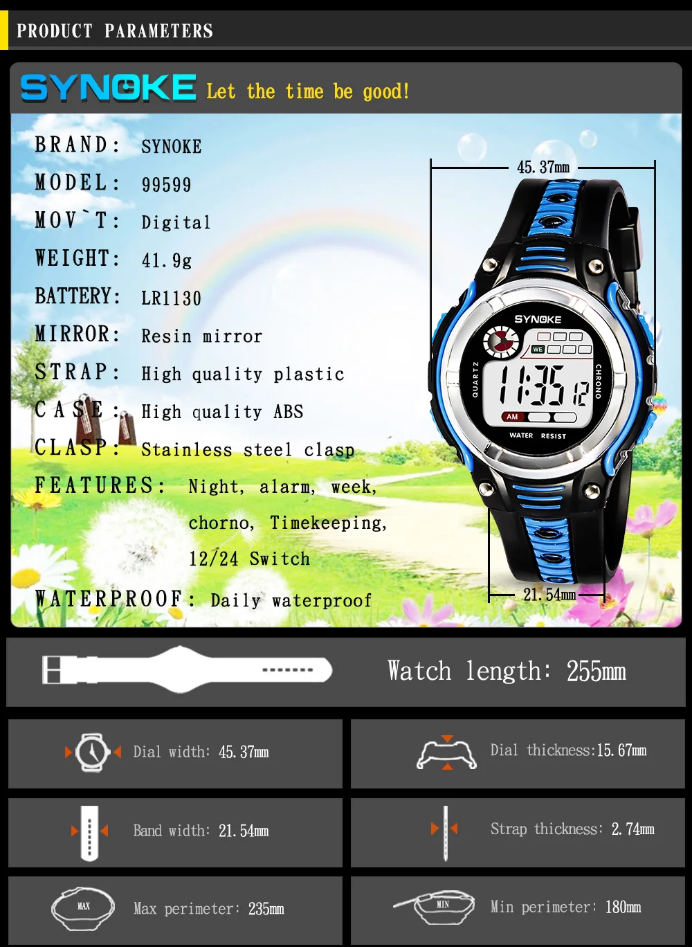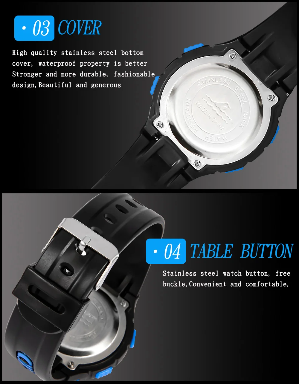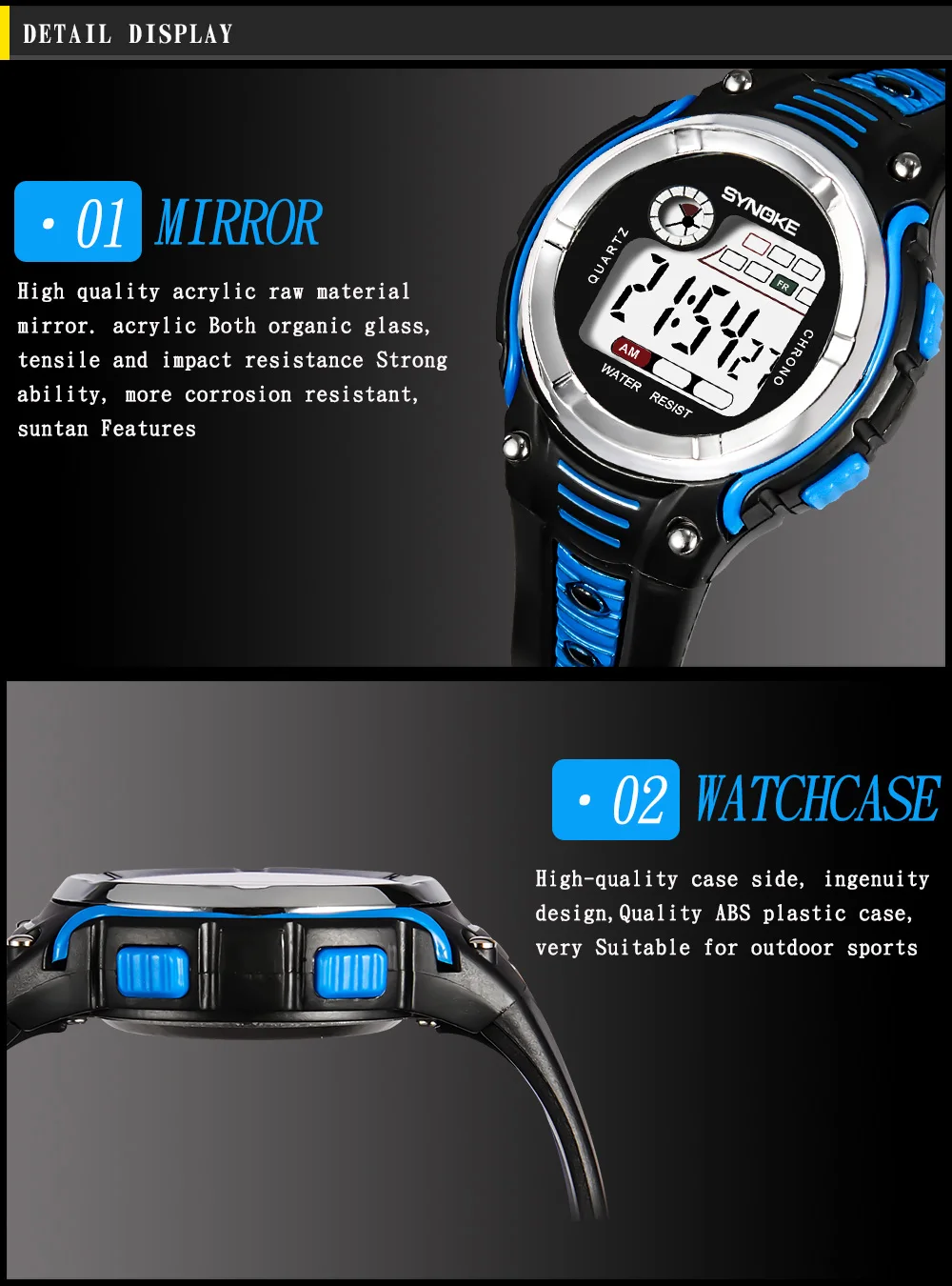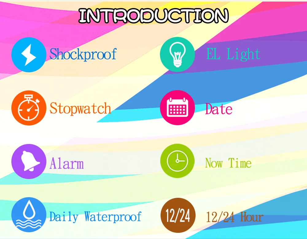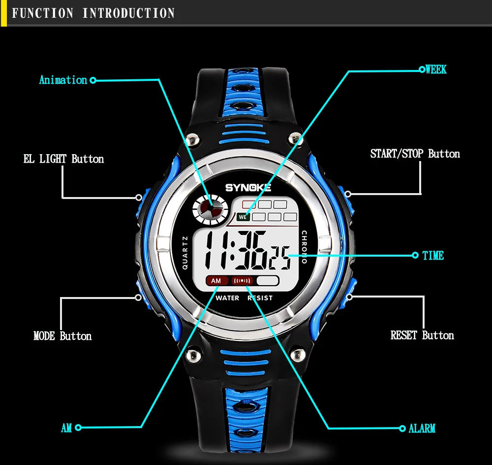 Feature:Water Resistant,LED display,Auto Date,Back Light,Complete Calendar,Week Display,Alarm,Chronograph