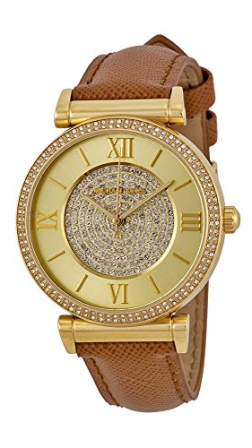 -. Title : Micahel Kors #MK2375 Women's Catlin Gold Tone Crystal Pave Leather Band Watch