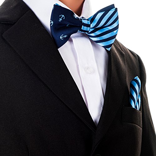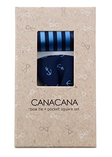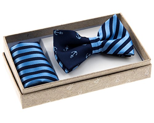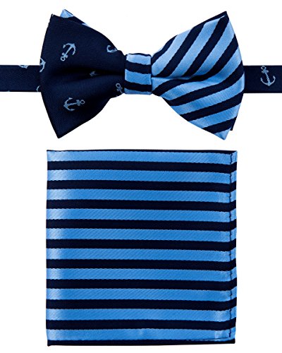 Canacana Classic Anchor Pre-tied Boy's Bow Tie with Stripes Pocket Square Set