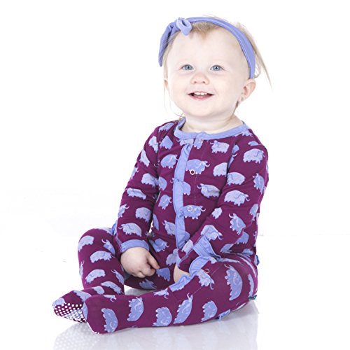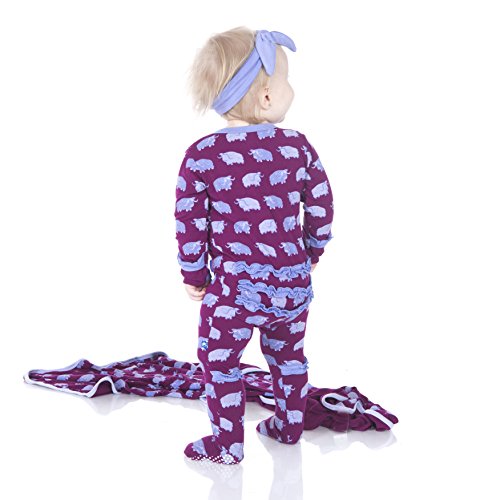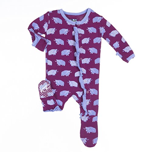 KicKee Pants Print Ruffle Footie (Baby) - Melody Musk Ox Your little sweetness will be extra scruptious in our ruffle footie. Out sweet ruffle footie features flip paws to cover cold hands and prevent scratching. The inside of the foot is lined with super soft fleece and the bottom has rubber grips to prevent slipping. Features:Feature