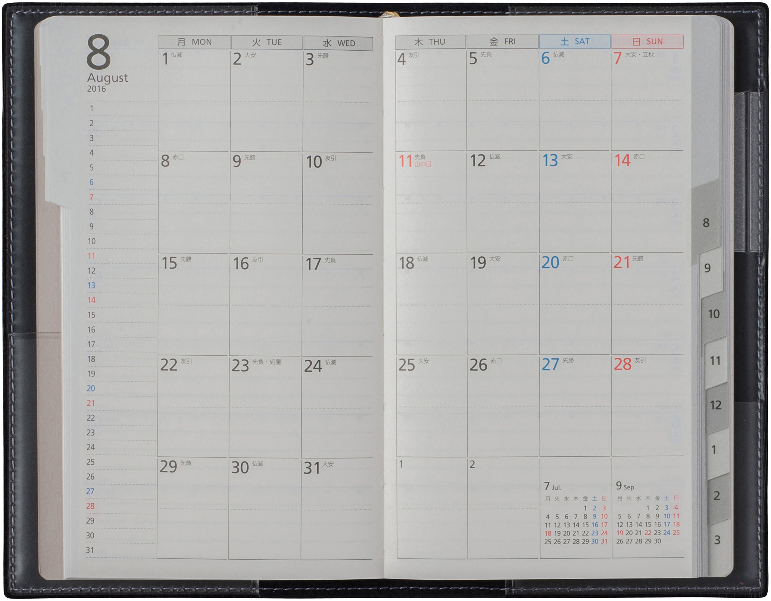 One row at the left is in the free memo field and the lower right has the calendar of the previous month next month.