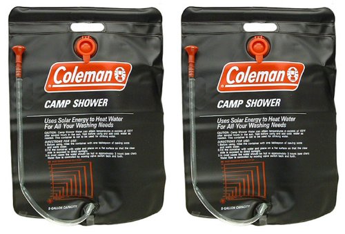 (2) Coleman 5 Gallon PVC Solar Heated Water Camp Showers - With On/Off Valve